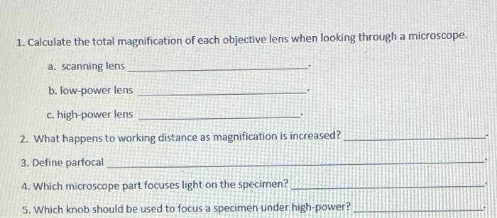 Solved 1 Calculate The Total Magnification Of Each Chegg Com